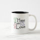 Símbolos chineses para a esperança, o amor e a fé na caneca