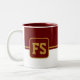 A caneca de café é mostrada aqui com um impressão de estilo de bloco de cores com uma letra de amostra, personalize e altere cores e letra ou comprar como está. Colors Maroon, Dourado, White Personalize este item ou comprar como está.