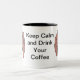 Cãozinho que diz "Fique Calmo e Beba Seu Café."