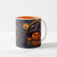 Caneca De Café Em Dois Tons Cena de Halloween 3D com Pumpkin, Caveira, Bruxa,