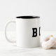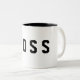 Esta caneca de café cerâmica é mostrada com um impressão de texto de BOSS. Personalize este item ou comprar como está.