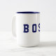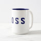 Esta caneca de café cerâmica é mostrada com um impressão de texto de BOSS. Tamanho 15 oz. Personalize este item ou comprar como está.