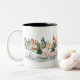 Celebrate the magical and festive holiday season with our personalized photo mug. Our vintage holiday design features a farm landscape of Christmas trees, this Christmas pattern features a farm Christmas scene with a farm, a red barn, children playing and throwing snowballs, Christmas trees and a red vintage truck