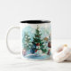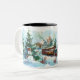 Celebrate the magical and festive holiday season with our personalized photo mug. Our vintage holiday design features a farm landscape of Christmas trees, this Christmas pattern features a farm Christmas scene with a farm, a red barn, children playing and throwing snowballs, Christmas trees and a red vintage truck