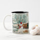 Celebrate the magical and festive holiday season with our personalized photo mug. Our vintage holiday design features a farm landscape of Christmas trees, this Christmas pattern features a farm Christmas scene with a farm, a red barn, children playing and throwing snowballs, Christmas trees and a red vintage truck