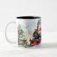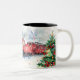 Celebrate the magical and festive holiday season with our personalized photo mug. Our vintage holiday design features a farm landscape of Christmas trees, this Christmas pattern features a farm Christmas scene with a farm, a red barn, children playing and throwing snowballs, Christmas trees and a red vintage truck