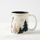 Celebrate the magical and festive holiday season with our personalized photo mug. Our vintage holiday design features a farm landscape of Christmas trees, this Christmas pattern features a farm Christmas scene with a farm, a red barn, children playing and throwing snowballs, Christmas trees and a red vintage truck