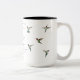 Mug apresentando beija-flores de garganta rubi e uma citação de Ulisses.