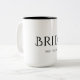 Caneca branca e negra clássica. Texto de bloco legante sobre fundo preto. As iniciais do noivo e noivo e a data do casamento podem ser removidas limpando o campo de texto.