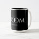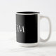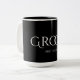 Caneca clássica de Groom preto e branco. Texto de bloco legante sobre fundo preto. As iniciais do noivo e noivo e a data do casamento podem ser removidas limpando o campo de texto.
