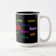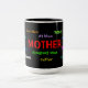 Coffee Mug com a palavra MÃE em vermelho-arrojado e várias outras palavras-mãe em fontes coloridas em fundo preto.