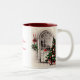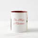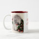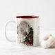 Canecas de Natal com uma cena de safena de uma árvore de Natal em frente a uma janela acesa à luz de velas à noite. Personalize o texto, mais tamanhos e cores disponíveis!