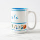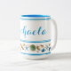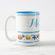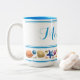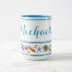 Caneca de café com conchas e design de listras. Use a opção Personalizar para adicionar seu próprio nome ou outro texto. Use a opção Personalizar se você precisar reposicionar o texto ou quiser alterar a fonte.