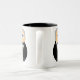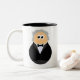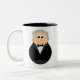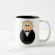 Este condutor pequeno bonito está pronto para seu concerto grande seguinte. Com seus smoking elegante e laço preto, olha grande nesta caneca branca e preta.