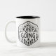 Continua, caneca, não desiste nunca desiste. Desenvolvimento pessoal retro vintage caminhador trilha maratonista de corridas maratoneira escalando aspas de consistência. A mentalidade de crescimento monta presentes de apoio à saúde mental.