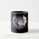 Esta caneca da arte da fantasia tem uma imagem de dois dragões que formam um coração nela.