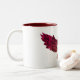 Esta design é o contorno de uma coruja com um gradiente de cor vermelho a bege e e a silhueta de um dentro de árvore.