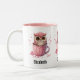 Caneca De Café Em Dois Tons Coruja rosa-branca numa taça