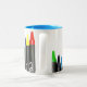 Esta caneca tem uma foto de lápis de cor brilhante nela.