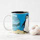 Caneca De Café Em Dois Tons E um Pengie pega a pedra