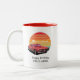 Procurando um presente de aniversário divertido para um amante de carro clássico? Esta caneca de café retrô apresenta a frase "Ela é clássica" ao lado das cores do pôr do sol vermelho e laranja e uma saudação personalizável para sua mensagem pessoal e seu nome. Crie seus próprios presentes personalizados para ocasiões especiais.