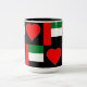 Uma engraçada caneca de café UAE de dois tons para pessoas emiráticas orgulhosas. Com um padrão cardíaco único e controlado inspirado na bandeira nacional dos Emirados Árabes Unidos. Faz uma ideia divertida de presente para amigos e família dos Emirados, e para qualquer um que ame os Emirados Árabes Unidos.
