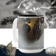 Eleve sua rotina matinal de café com nossa Mug de Café de Dois Tom, com uma fotografia encantadora de Enfeites de natal retrorreflectores. A paleta colorida clássica de cinzas e preto, destacada com pistas de prata, exude uma elegância eterno que evoca memórias de confortável noite de inverno. Personalize o texto para torná-lo ainda mais especial.
