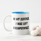 Engraçado, com licença. Piada Humorosa Dizendo Idiotas Oferece "Em Minha Defesa, Eu Fui Deixado Sem Supervisão" Esta caneca hilariantemente Relacionável é perfeita para qualquer um que já usou uma desculpa clássica. A design engraçada e sarcástica traz certamente um sorriso à sua cara. Principais recursos: Design Humoroso: uma citação espirituosa e relacionada. Presente perfeito: ideal para amigos, família ou qualquer pessoa que aprecie uma boa risada. Use esta caneca e abraça sua bola interna. Palavras-chave: caneca engraçada, caneca sarcástica, caneca de humor, caneca de piada, citação engraçada, caneca de moda, presente de gag de pop dom presente sarcástico