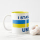 Colorida Mug Que Apresenta Sinalizadores Ucranianos E Declaração Que Mantenho Com A Ucrânia Em Apoio Dos Ucranianos.