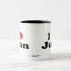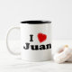 Eu amo Juan! É seu nome Juan? Você tem uma esposa, um namorada, um membro da família fêmea ou um amigo fêmea que você saiba amores você? Ou você tem um marido, um namorado, um membro da família masculino ou um homem Juan nomeado amigo quem você ame profundamente? Em caso afirmativo, este "que eu amo" a caneca é exatamente o presente que você está procurando! As características de design a letra "mim" na rotulação preta com um coração vermelho na parte superior e no "Juan" na rotulação preta na parte inferior.