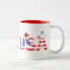 "EUA" nas Estrelas e Stripes com ícones e cristais, uma árvore de Natal e um chapéu de Papai Noel em "EUA", e flocos de neve em vermelho, branco e azul no fundo. Design exclusivo dos EUA para as estações de férias.
