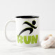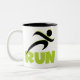 Faça design com T-shirts, capuzes, tampas de tanques, camisetas de manga compridas, botões, bolsas, guardas e outros roupas e presentes que apresentem um corredor de silhueta preto e um texto verde primavera que leia RUN. Se você estiver treinando para executar seu primeiro 5K, apenas adoro correr, ou ter passado várias maratonas, você vai adorar esses itens de roupa e presentes corridos.