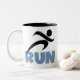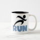Executar design com T-shirts, capuzes, tampas dos tanques, camisetas de manga comprida, botões, bolsas, guardas e outros roupas e presentes que apresentam um corredor de silhueta preto e texto azul que lê RUN. Se você estiver treinando para executar seu primeiro 5K, apenas adoro correr, ou ter passado várias maratonas, você vai adorar esses itens de roupa e presentes corridos.