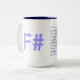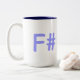 Caneca F-Afiada: Texto dianteiro: Parte traseira de F#: Escala principal F-Afiada (musical, notas) e descrição sucinta do linguagem de programação de F# (do Web page da pesquisa de Microsoft)