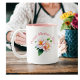 Caneca inspiradora com flores de camélia e um verso inspirador. Você pode personalizar a referência do verso bíblia ou mudá-la para palavras.