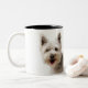 Caneca De Café Em Dois Tons Feche acima de um terrier