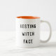 Sirva uma xícara de seu "breu" favorito em nossa caneca de Dia de as Bruxas engraçado. Design apresenta "rosto de bruxa descendente" em letras negras modernas. Adoramos no estilo de dois tons com um interior cor de laranja festivo no Halloween.