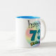 Blauwe gelukkige 70ste verjaardag mok Leuk om the geven als cadeau aan iemand die zeventig é geworden Vrolijke kleurige mok encontrou regenboog kleuren.