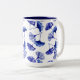 Caneca De Café Em Dois Tons Folhas de gingko azuis e brancas