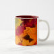 Este as canecas lindos caracterizam um hetero da cena do outono, com ele são folhas caídas coloridas.