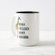 Engraçado Girafa Pun Coffee Mug de dois tons projetado por Nisha Prabhu. Uma girafa engraçada com palavras de trocadilho "Frequência do Mais alto". Dimensão do mais alto.'' Passe em estilo com esta caneca de café de duas tonalidades com um design de girafa punny que certamente faz você sorrir com cada gole! Perfeito por adicionar um pouco de humor à sua rotina matinal ou como um presente divertido para seus amigos altos e engraçados. Tome a sua dose diária de riso com esta caneca esquisita no Zazzle!