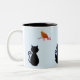 Caneca De Café Em Dois Tons Gato Negro e Pássaro Vermelho