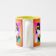 A caneca colorida é uma combinação de gráficos e vem em dois tamanhos - 11 oz e 15 oz - máquina de lavar louça e micro-ondas seguras