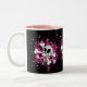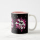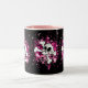 O crânio de Girlie e os ossos cruzados com arco estão cercados por uma explosão de cor-de-rosa com corações e estrelas.
