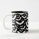 Esta caneca de café é mostrada em preto e branco com um impressão de morcegos de Halloween. Personalize este item ou comprar como está.