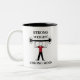 Lança-Pesos Bodybuilder Coffee Mug De Dois Tons. Homem ginásio atleta esportivo que levanta a vitrine do halterofilismo da campainha com a ilustração do vetor dizendo 'Forte Peso Forte'. Totalmente personalizável. Personalize com sua citação.