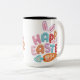 Caneca De Café Em Dois Tons Happy Easter Knitted Texture Bunny Ears Carrot Pas