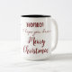 Bela Caneca de Natal, com um beija-flor arruinado vestindo um chapéu de Papai Noel.