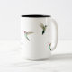 Uma caneca bonita para amantes de beija-flores, apresentando duas aves-beija-flores de Anna, e a citação "O tempo passado a observar beija-flores nunca é desperdiçado". Imagem e citação de Christiane Dobbins.