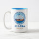 Aegina, caneca de café de duas tonalidades Grécia com um design de um antigo navio grego e uma letra de estilo grego. Esta Grécia da antiga nave design tem a chave grega em um design de círculo com o mar e o céu. Este design de estilo grego faz desta caneca um presente ou lembrança ideal ou tomar café enquanto você está de férias na ilha Aegina.